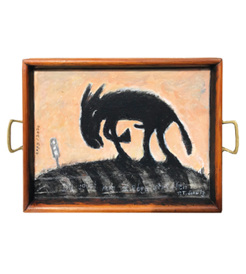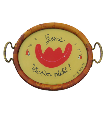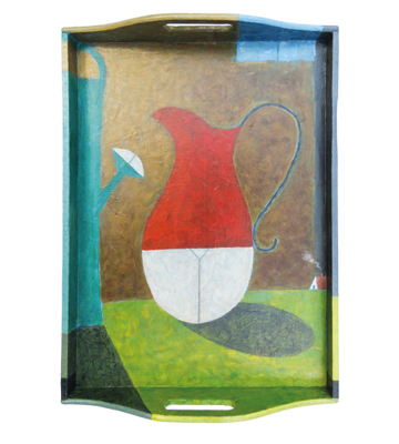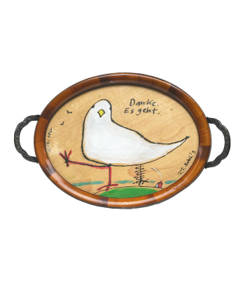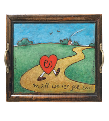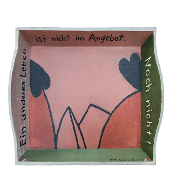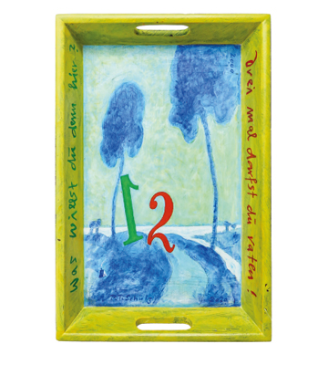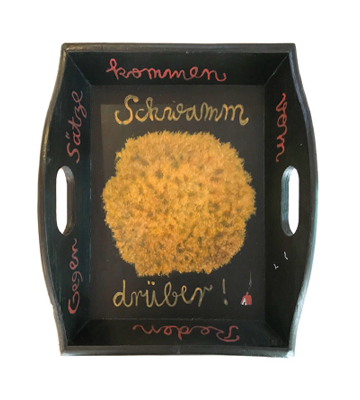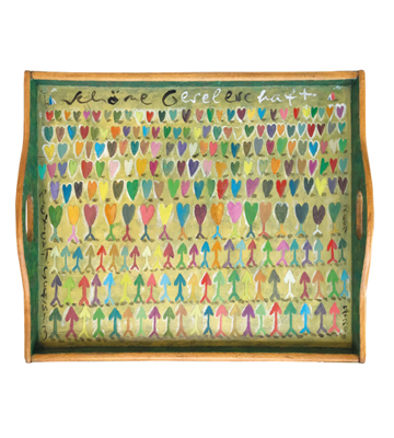– Verwandelt in benutzbare Olle Hansen-Kunst. Jedes Tablett ein Original in Öl/Acryl. Wir bedienen der Reihe nach – solange der Vorrat reicht.